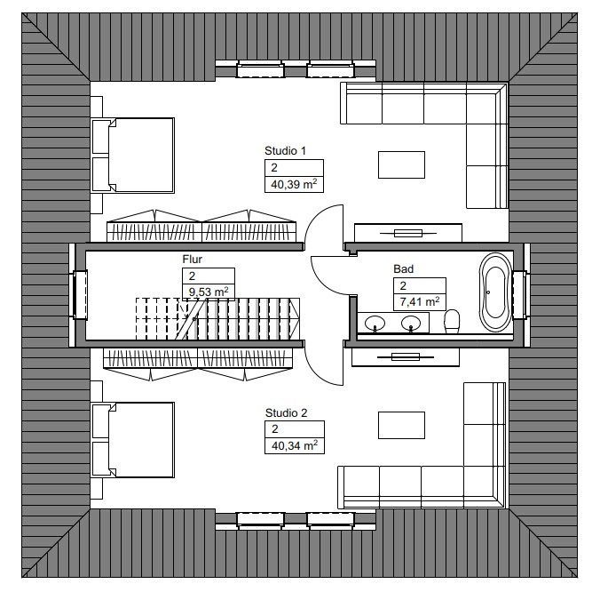 -Wohnungen: zwei komfortable, eigenständige Einheiten, jeweils auf zwei Wohnebenen